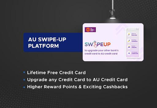 SwipeUp Platform is a unique offering of AU Small Finance Bank that offers upgraded Credit Card to other Bank Credit Cardholders. Through this platform, you will get an assured upgraded AU Credit Card against other bank's existing credit card matching your current upgraded lifestyle